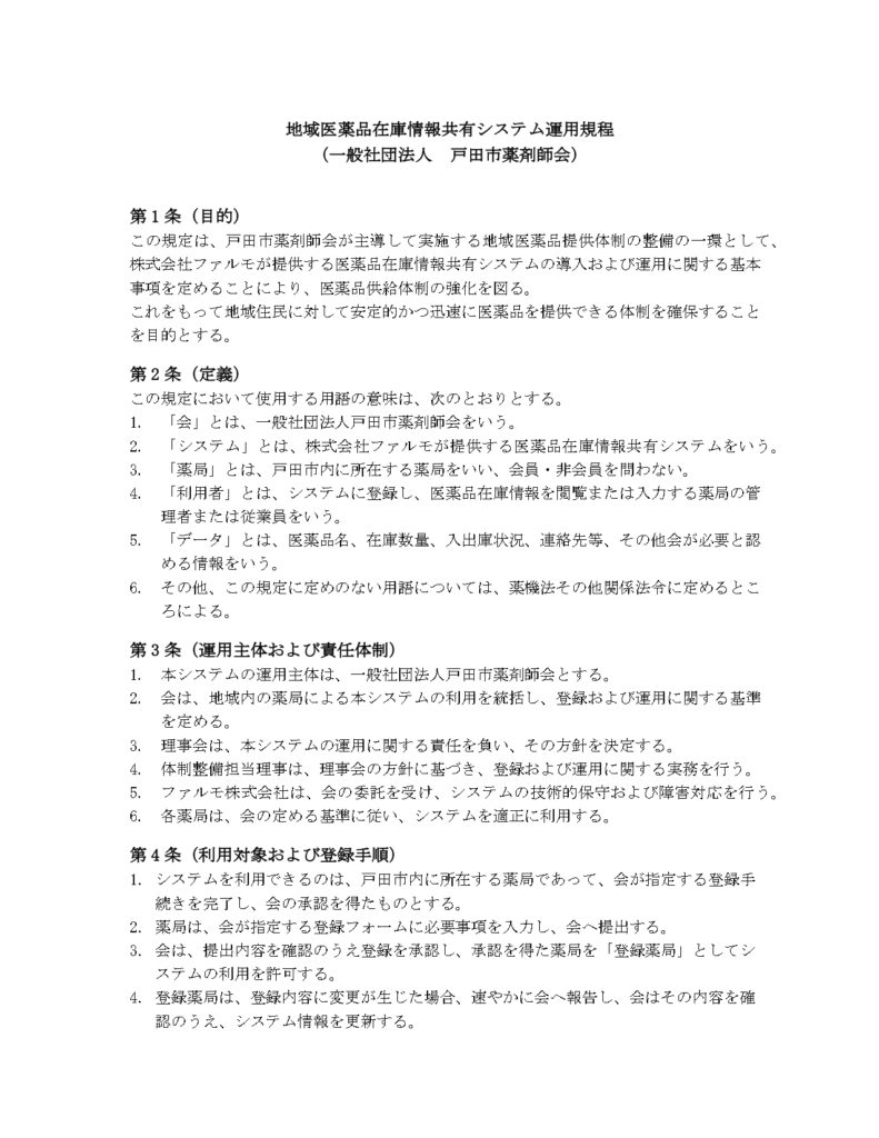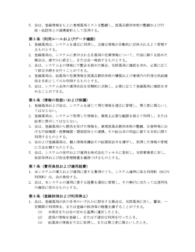 地域医薬品在庫情報共有システム運用規程について